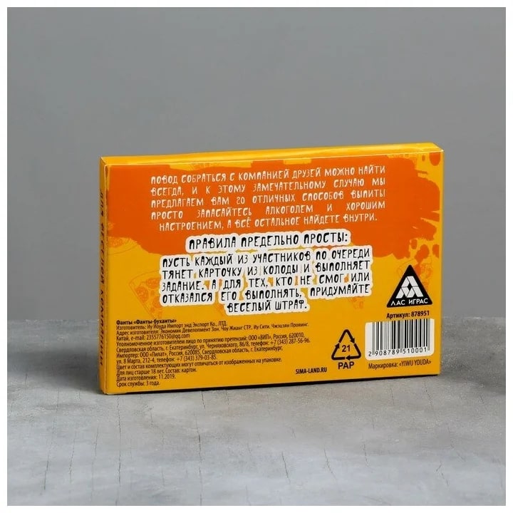 Купить игра для компании "фанты буханты" 20 карт от 100 руб. с доставкой до пункта выдачи в Высоцке. Интернет магазин ДекаМаркет. Оплата при получении.